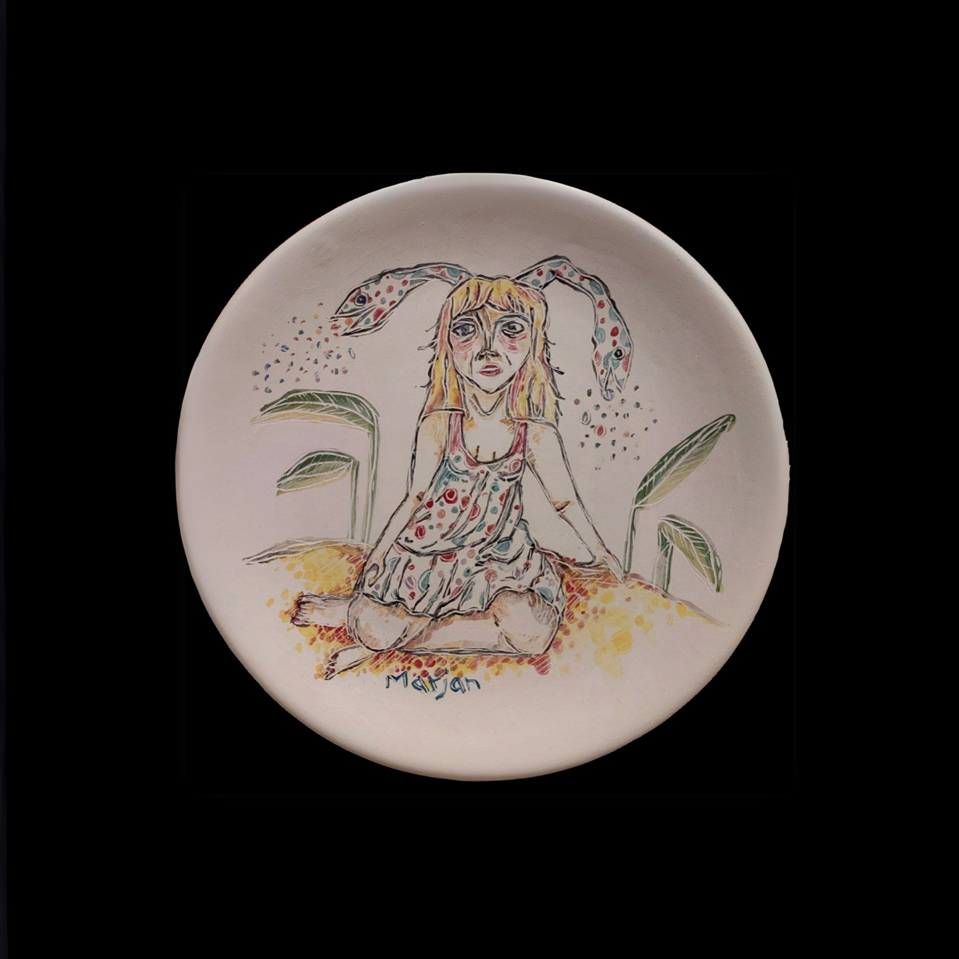 This medium-scale ceramic artwork by Marjan Andaroudi is a breathtaking example of her skill in underglaze painting. With a diameter of 19 cm, the piece is a bold and striking creation that commands attention. Crafted from earthenware, it features intricate patterns and vibrant colors that reflect Marjan’s unique artistic style. Weighing approximately 357 grams, the artwork is both substantial and elegant, making it a centerpiece for any art collection.