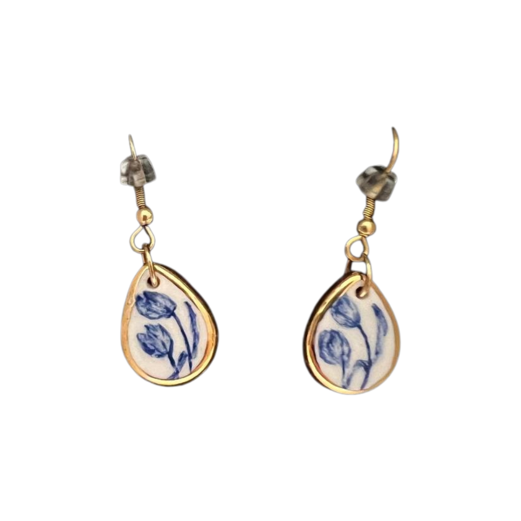 Additional Info: Each set can be ordered separately as a necklace or earrings. Handcrafted with fine enamel detailing and gold-plated framing.