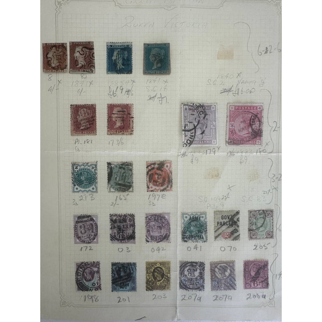 Description: A fine selection of Great Britain stamps, spanning from Queen Victoria issues (mid-late 19th century) to early 20th-century reigns. The lot includes several notable stamps such as early Penny Reds, surface-printed issues, Army and Government Official overprints, and high-value denominations including £1 Contract Note revenue and multi-shilling stamps. These historically significant stamps showcase the evolution of British philately, making the group an excellent acquisition for advanced collectors.