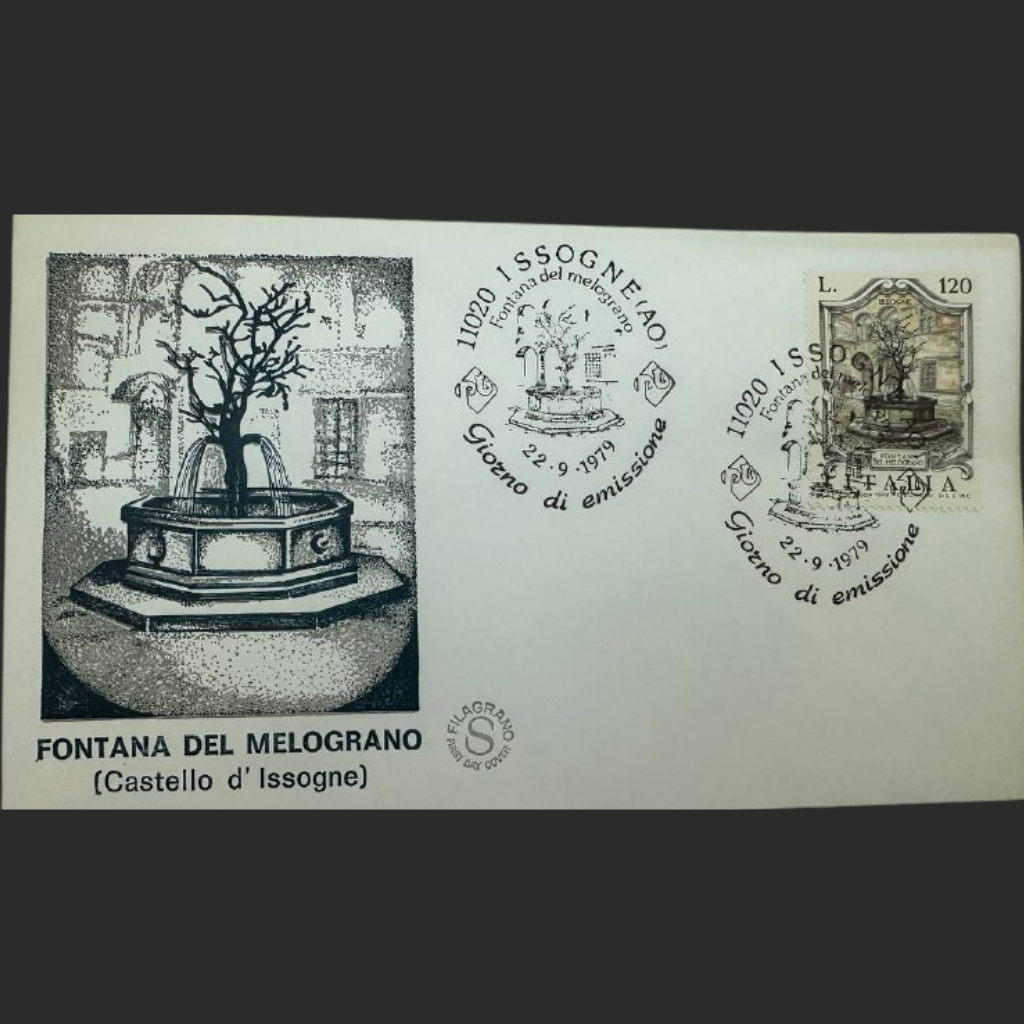 Postmark: 22.09.1979 – Issogne (AO) – Fontana del Melograno – Giorno di emissione