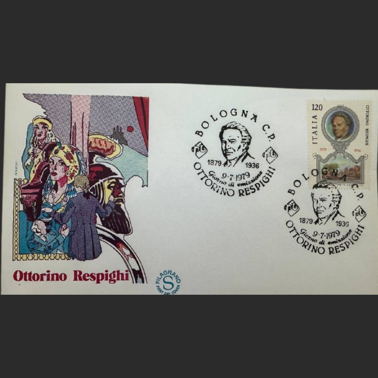 Postmark: 09.07.1979 – Bologna C.P. – Ottorino Respighi – Giorno di emissione