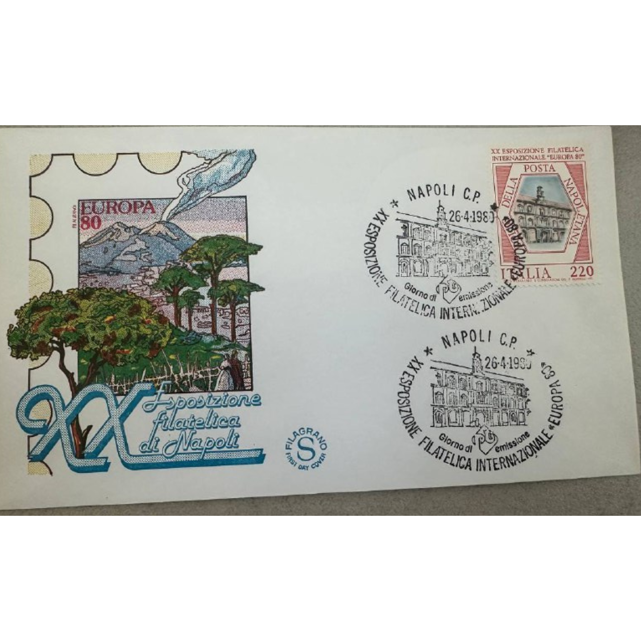 Description: This Italian First Day Cover (FDC) was issued to commemorate the XX International Philatelic Exhibition held in Naples in 1980.