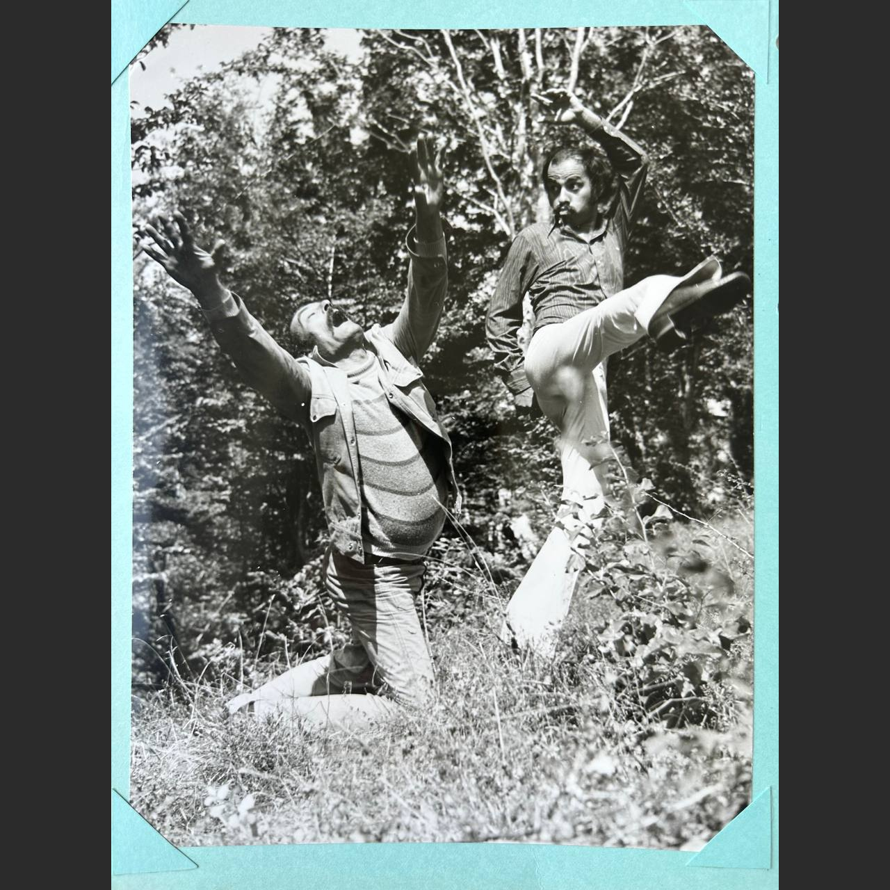 Original vintage lobby card featuring renowned Iranian actor Morteza Aghili in a dramatic outdoor scene. Captured in black and white, this powerful image highlights the expressive performances and dynamic storytelling that defined Persian cinema during the 1970s.