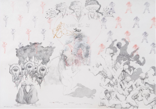 Description: A thought-provoking piece that explores the concept of love and human connection. The work features intricate details and a blend of ink and pencil, creating a sense of depth and emotion.