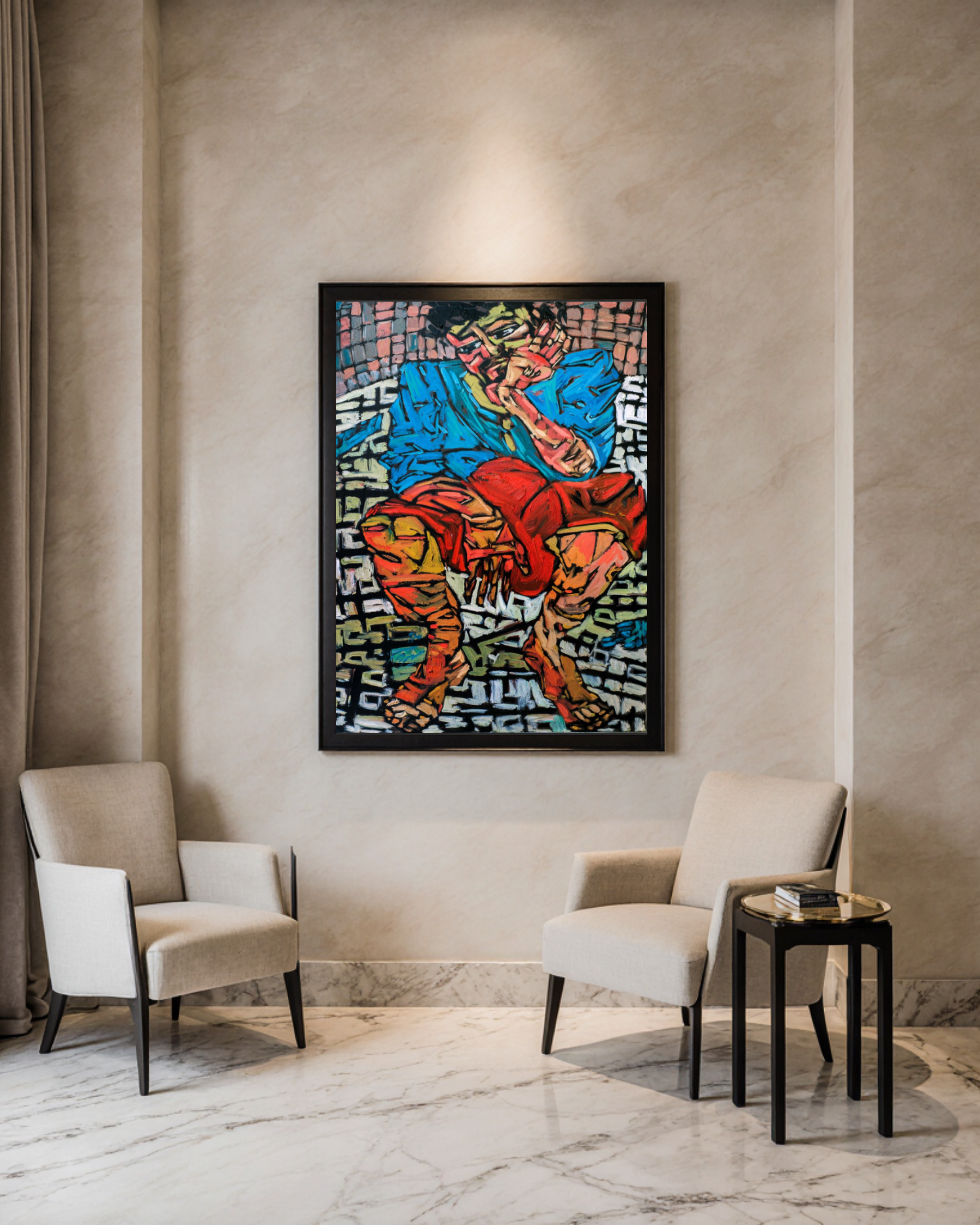 About the artist: Sirvan Kanaani is an artist whose work is deeply rooted in his surroundings, often blending human figures with nature to create mesmerizing compositions. His paintings are a rhythmic dance of color and form, capturing the fluidity of life.