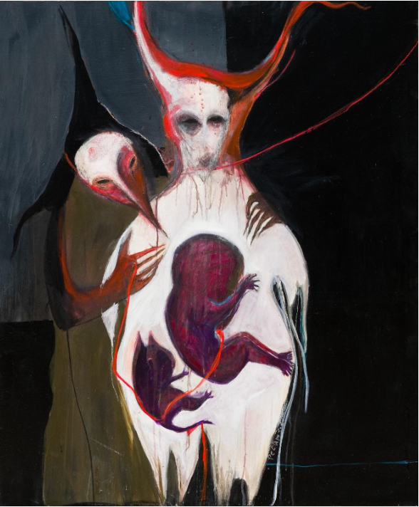 About the artist: Pegah Salimi’s work often reflects the traumas of war and the resilience of the human spirit, blending vibrant colors with dark undertones to create a powerful visual narrative