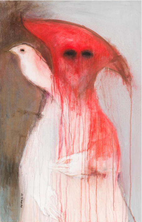 About the artist: Pegah Salimi’s art is deeply introspective, often exploring themes of identity, trauma, and resilience through bold and expressive compositions