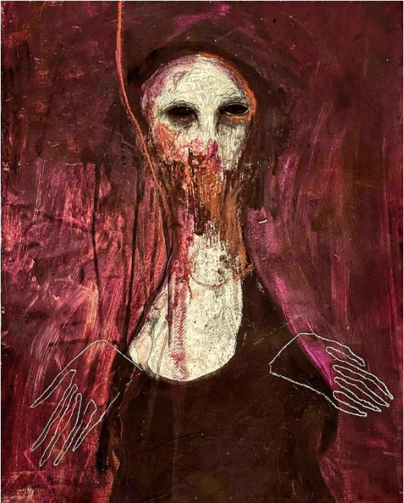 About the artist: Pegah Salimi’s art is deeply introspective, often exploring themes of identity, trauma, and resilience through bold and expressive compositions.