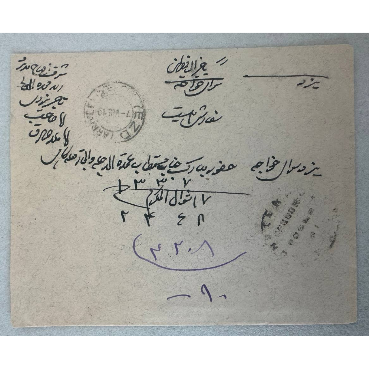 Description: An authentic postal cover from the Qajar dynasty, bearing two 9 Shahis stamps featuring Ahmad Shah Qajar. Postmarked on 21 June 1919 (1337 AH), this rare historical item represents the late Qajar era, just years before the end of the dynasty. The stamps are well-preserved with clear details, and the handwritten address and period cancellations add significant historical character.