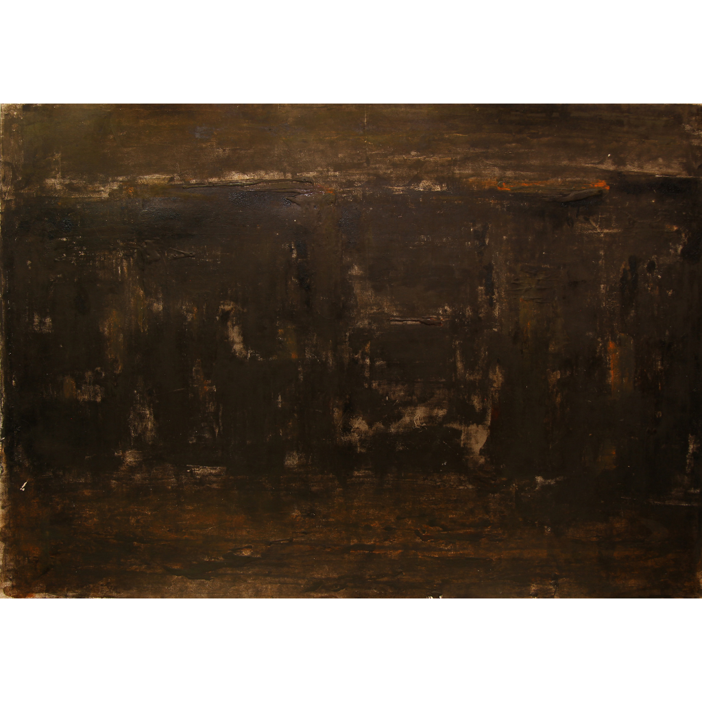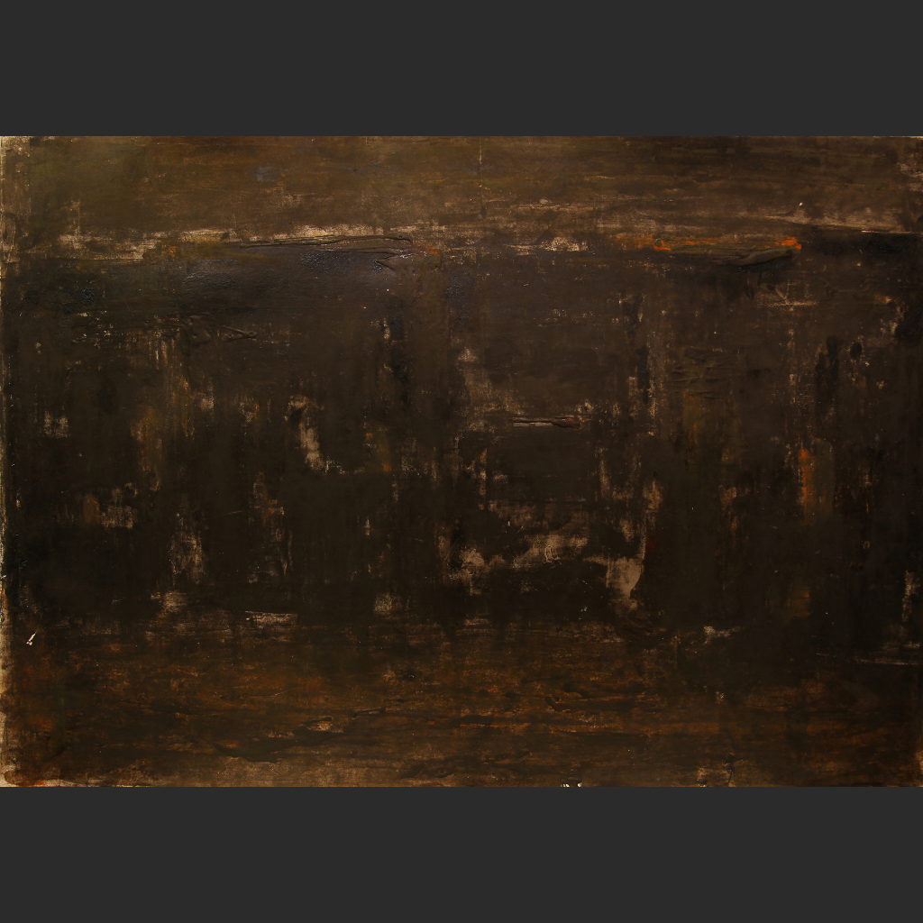 Description: This atmospheric work from the Series of Eruption explores the fragility of surface and structure. Subtle earth tones, barely visible orange embers, and worn textures create a suspended moment between memory and disappearance. The layered marks and silent abrasions form a language of erosion, echoing a world shaped by time and resilience.