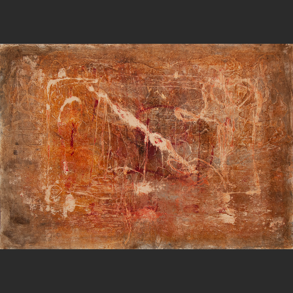 Description: Series of Threshold of Feeling explores a delicate tension between emergence and disappearance. In this work, organic red and rust-toned layers stretch and dissolve across the surface like neural pathways or ancestral traces. The fragile balance of motion and silence, of density and void, invites the viewer into a liminal space—where sensation forms just before becoming thought.