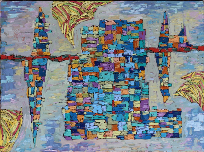 Description: A large-scale painting that captures the interplay between human figures and nature. The work features bold brushstrokes and a vibrant color palette, creating a sense of movement and energy.