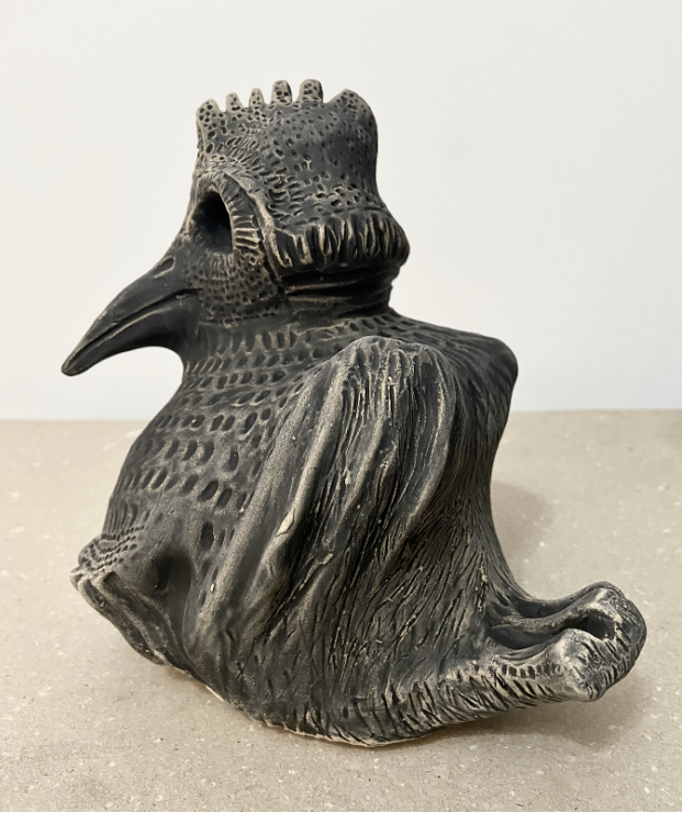 Description: This ceramic sculpture by Mahsa Karimi depicts a bird, symbolizing freedom, grace, and the natural world. The artist’s attention to detail and the organic form of the bird create a sense of movement and life. The use of ceramic adds a tactile and earthy quality to the piece, making it a captivating work of art.