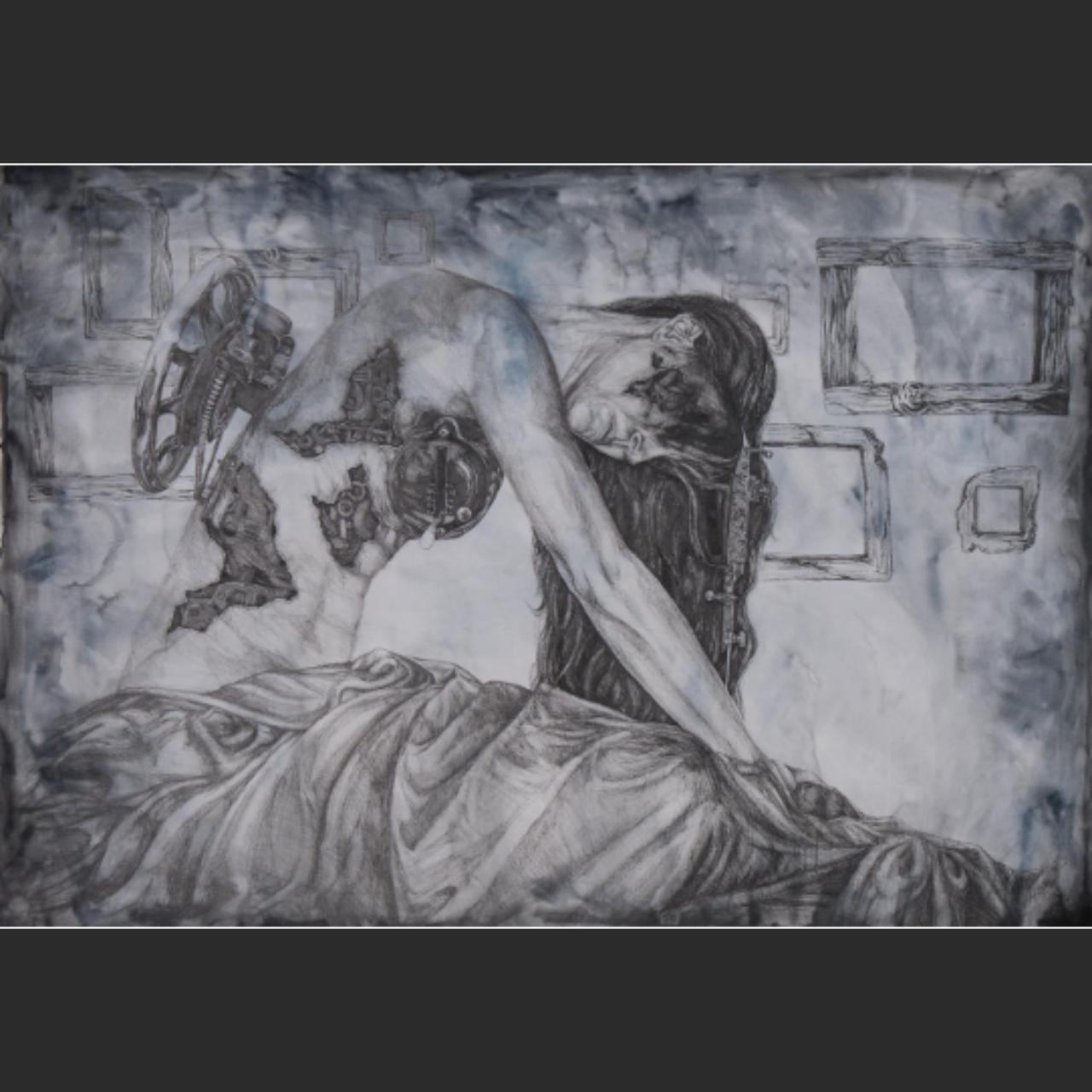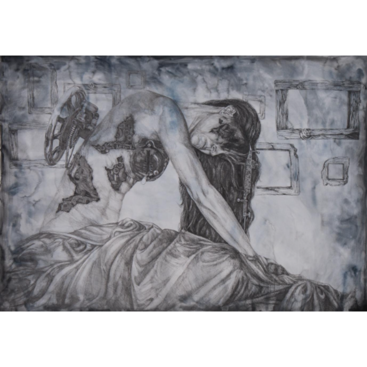 Description: A thought-provoking piece that explores the concept of mortality and the cycle of life. The work features intricate details and a blend of watercolor and ink, creating a sense of depth and texture.