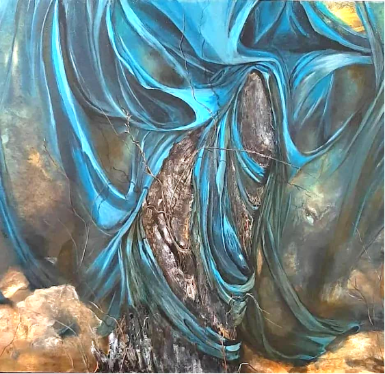 Description: A mysterious and evocative painting that explores the concept of concealment, blending natural elements with a sense of ambiguity. The work invites viewers to reflect on the hidden layers of meaning beneath the surface.