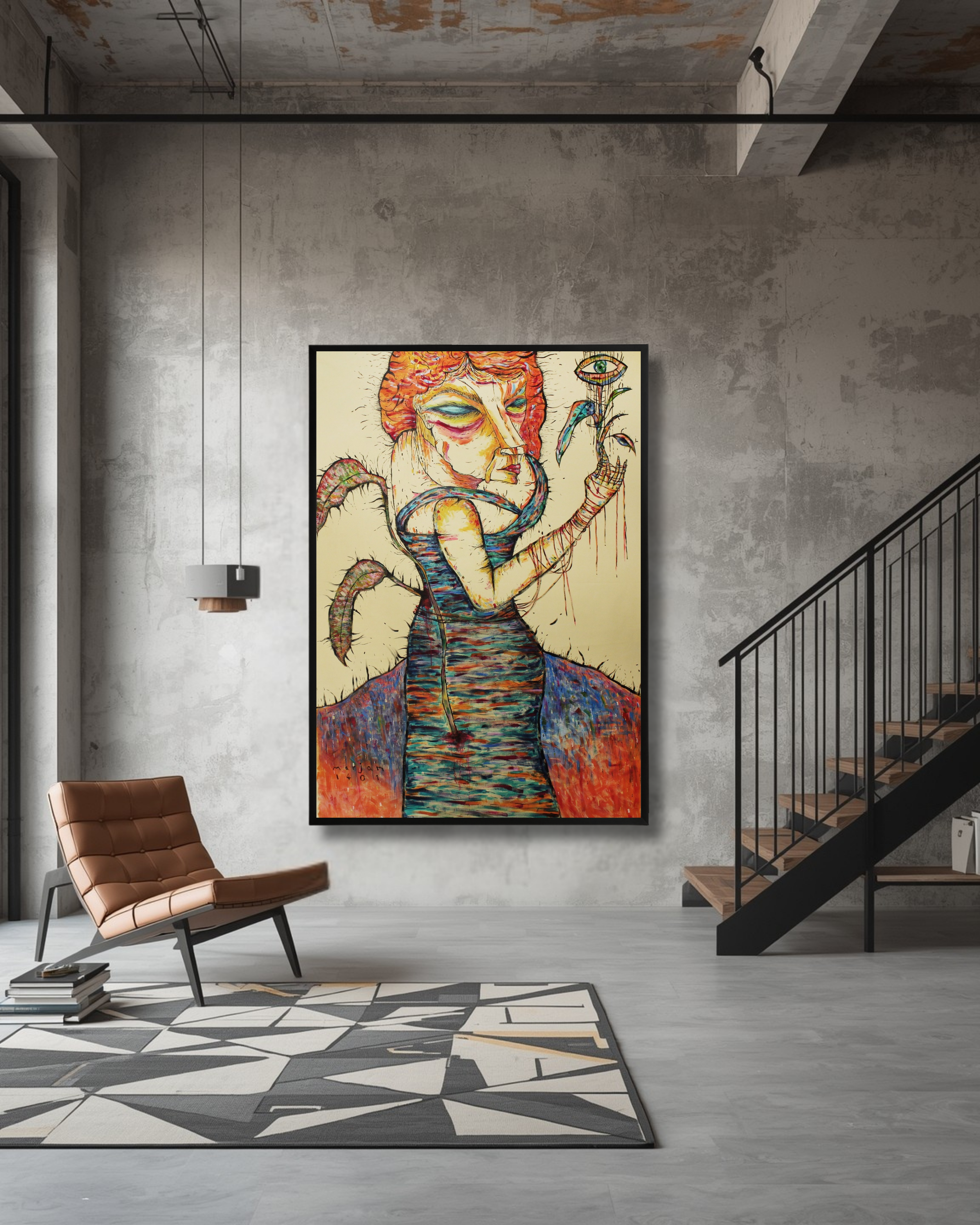 More information: This unique acrylic-on-canvas painting is an original artwork. It will be shipped rolled in a secure protective tube. If you prefer the canvas stretched onto a frame, kindly allow extra time for processing. As a one-of-a-kind creation, all copyrights and reproduction rights are exclusively retained by the artist.